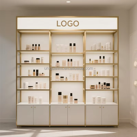 Aangepaste Cosmetische Planken Vitrine Kast Standaard En Make-Up Display Muur Showcase Voor Retail Make-Up Winkel